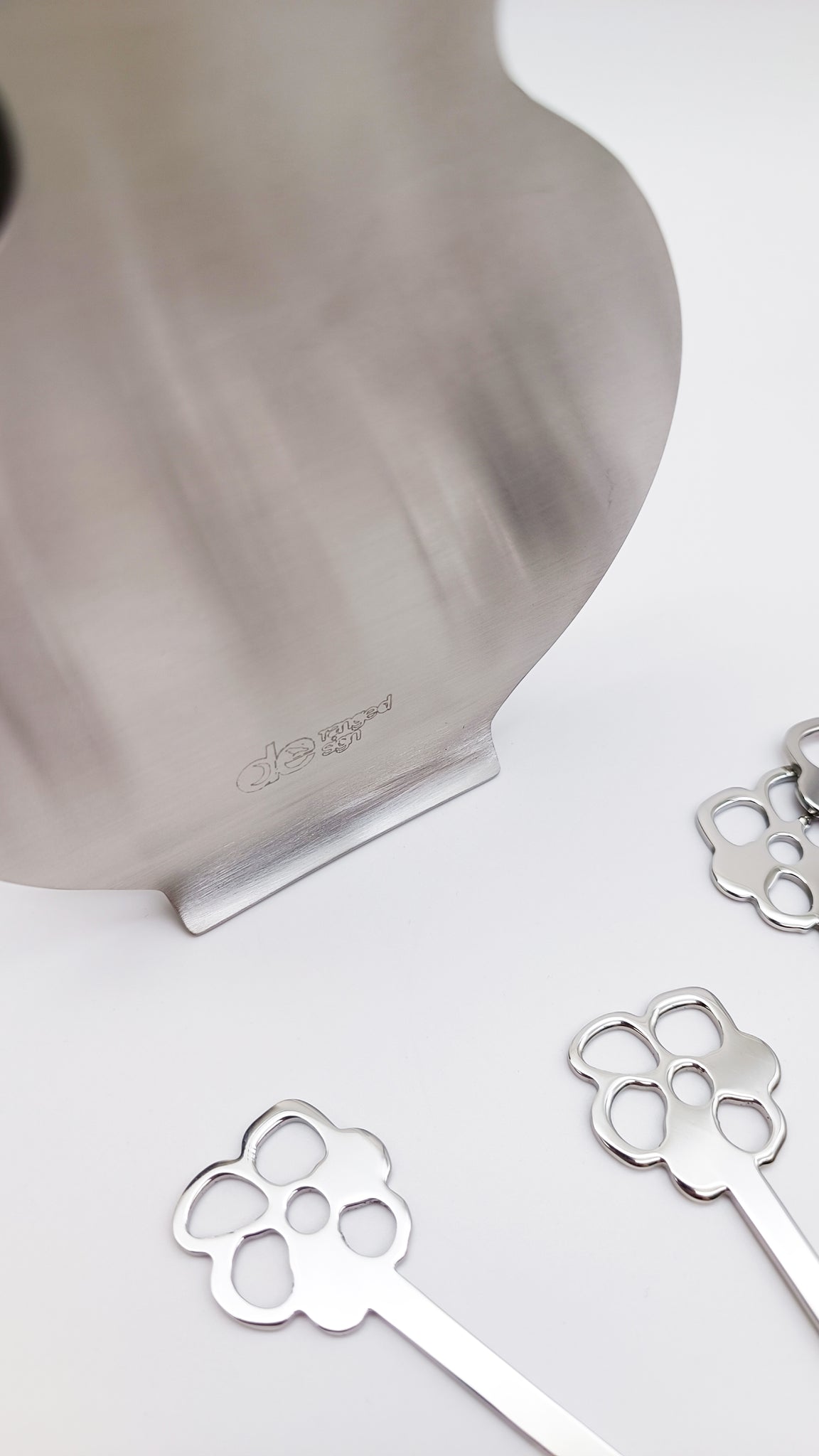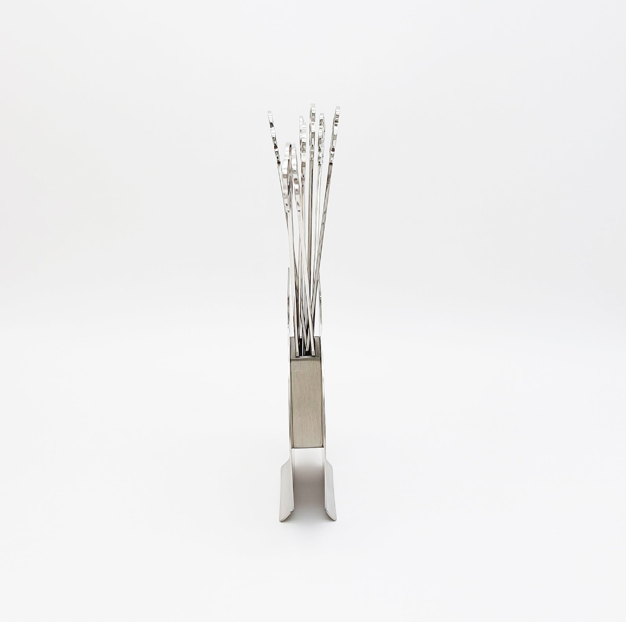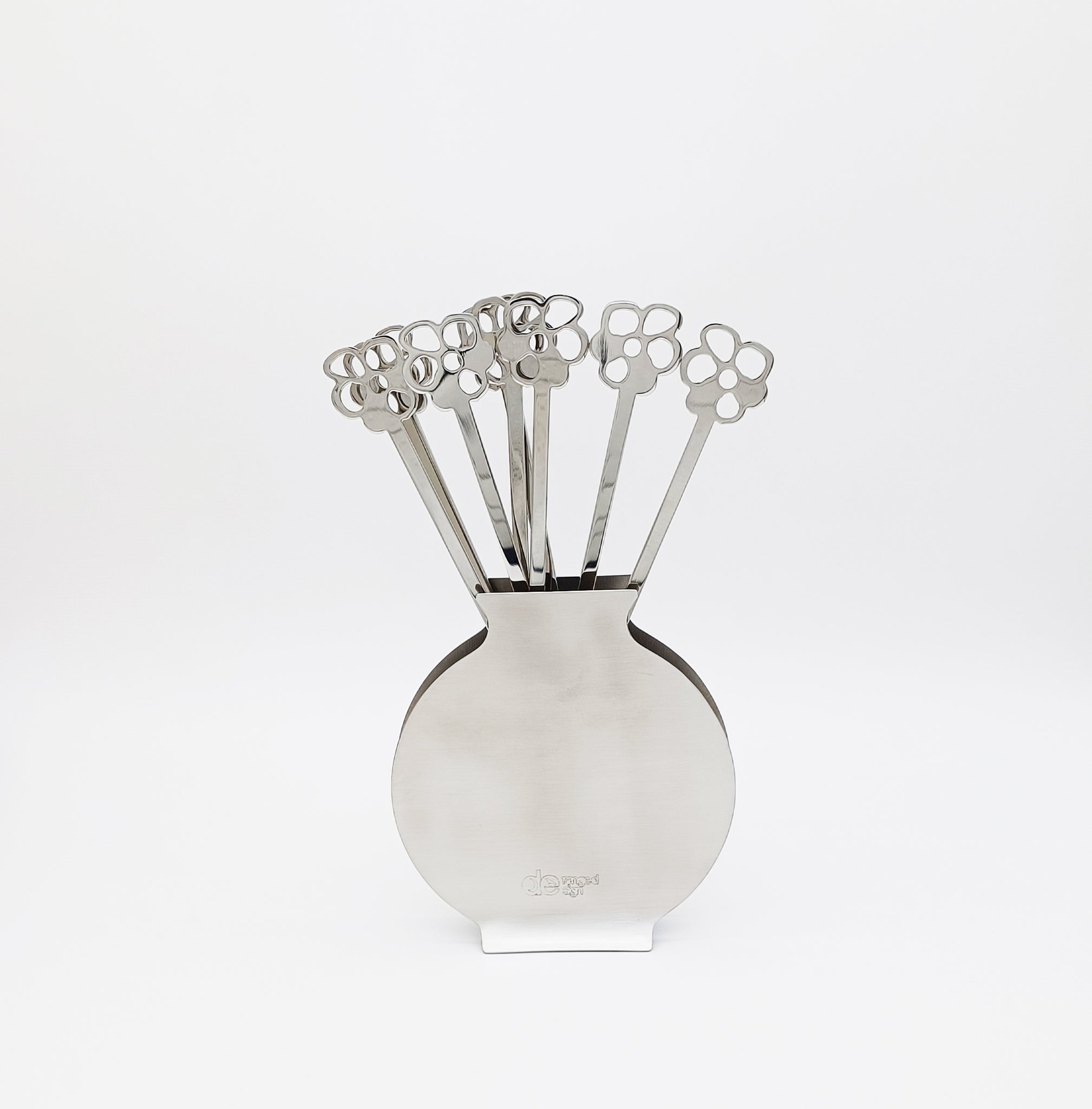 VASO is an elegant stainless steel serving set featuring a vase-like holder with 8 flower-shaped forks, resembling a blooming bouquet. Crafted from premium 18/10 (SUS316) stainless steel, it offers exceptional rust resistance and durability. Beyond its functionality as tableware, VASO doubles as a stunning home decoration, making it an ideal gift.